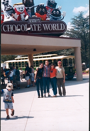 (L - R) kernal cataffee (in black) w/ the chocobot 3 prior to a live acapella gig at the hershey chocolate factory in 2002